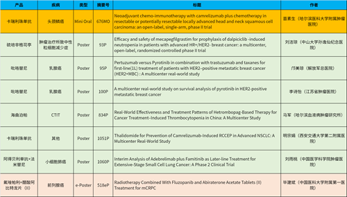 在头颈肿瘤、乳腺癌、肺癌、前列腺癌等多个疾病领域,卡瑞利珠单抗、阿得贝利单抗、吡咯替尼、氟唑帕利、法米替尼、醋酸阿比特龙片(II)等抗肿瘤新药相关研究一共入选了1项简短口头报告、4项壁报展示和1项电子壁报,彰显了尊龙凯时医药强劲的研发实力。